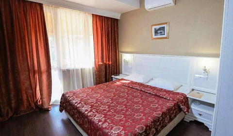 Уютные номера выполнены в классическом стиле, что позволяет проживающим почувствовать комфорт в период размещения. Все комнаты оснащены необходимой мебелью и техникой. Санузел укомплектован стандартным набором сантехники. Из окон открывается живописный вид на море.