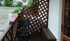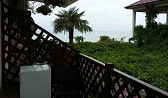 Фото не соответствуют реальной картине. Дом находится под магазином и рядом еще кафе, во дворе, поэтому не рассчитывайте на спокойный отдых. Одна сторона дома выходит на дорогу, а это шум машин даже ночью. Бронировали номер с балконом, с видом на море, но по факту нам дали номер с видом на дорогу и пятиэтажный дом через эту дорогу, огорчились хозяйка пообещала поменять через два дня как освободиться номер с боковым видом на море. Стандарт с балконом фото вообще не соответствуют, комнаты маленькие, меньше 20кв.м.( поменяйте фото не вводите людей в заблуждение), помещается кровать, узкий шкаф при входе ,столик. Кровати в номерах сдвинутые, односпальные, перекрытые тонким матрасом, по комфорту очень неудобные, да еще постельное белье не по размеру, простыня просто разложена на матрасе, заправить ее не возможно, она короткая и поэтому когда спишь, просто сворачивается под тобой. За семь дней номер не убирался ни разу, не предложили поменять полотенца. В коридоре стоит общая мусорка, куда все отдыхающие со второго этажа складывают мусор, если она переполнена и твой номер возле нее, как был у нас вид не радует. Вообщем сервиса в этом гостевом доме нет вообще, снял номер и живи, это мы были не в сезон, а за те деньги, что они просят в июле и августе, я бы к ним не поехала, в Абхазии уже четвертый раз и есть с чем сравнить. Надеюсь мой отзыв будет кому то полезен, да хозяева обновят фото своих номеров.