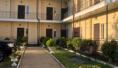 Отдыхали с 4 по 19 июля семьей из трех человек. Номер был 10 на втором этаже. Очень уютная и комфортная мини-гостиница с домашней атмосферой и очень чистой и ухоженной территорией. Милая приятная хозяйка Камилла, всегда на связи и готова решить любой вопрос или проблему, но у нас никаких проблем не было. На территории есть просторная кухня со всем необходимым: посуда для приготовления еды, для сервировки и т.п., два больших холодильника, электрические плитки (одна двухкомфорочная, вторая с одной комфоркой). Также имеется зона барбекю, беседки и т.д. Номер у нас был чистый, светлый, просторный. В номере есть маленький холодильник, кондиционер, ТВ. Уборка в номере самостоятельно (мне не проблематично протереть пол), мусор можно вынести в мусорные баки рядом с общей кухней, это вообще не проблема. Также есть очень хорошая столовая, вкусно и по приемлемым ценам. рядом с мини-гостиницей множество магазинчиков и кафе, рябом есть небольшая пиццерия, где готовят вкусную пиццу, пицца только на вынос, готова после заказа минут через 10-15. До моря от гостиницы действительно 1,5-2 минуты пешком, море чистейшее, пляж галька. Вообщем очень рекомендую данный объект размещения!!!! Нам все понравилось, Мы очень довольны, с удовольствием бы вернулись.