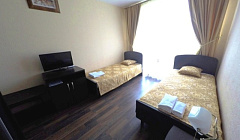 КРУГЛОГОДИЧНЫЙ отель Дом Москвы в Сухуме находится в историческом центре города, в 50 м от набережной, пляжа. Закрытая территория с круглосуточной охраной, парковка на территории - бесплатно, есть подземная парковка - 100 руб./сутки. В стоимость проживания входит охраняемая парковка, посещение спорт-зала. Здание "Дом Москвы" 3 этажа. На 1 этаже прачечная, фитнес-центр. На 2 - офисы, оздоровительный кабинет, выставочный (демонстрационный) зал, ресторан. Есть услуга доставки еды в номер. Питание комплексное: 300 руб. - завтрак, 500 руб. - обед, 450 руб. - ужин, (ресторан не наш, но можно включить, добавив к стоимости номера стоимость питания). На 3 этаже отель, конференц-зал на 50 мест для бизнес-тренингов, комната переговоров для командировочных. Здание может работать автономно – есть генератор, накопительные баки. Мощные сплит-системы в каждой комнате и в холле. Wi-Fi бесплатно в холле и в номерах. Круглосуточная стойка бронирования.