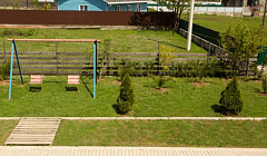 - детская площадка, с качелями, с горкой и т. д.