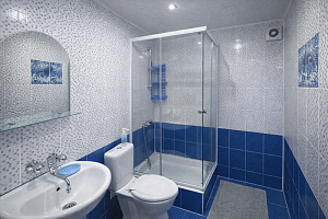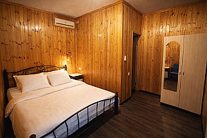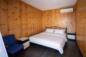 • 3 номера в большом шале • двуспальная кровать • односпальная кровать • кресло-кровать • шкаф, тумбочки, фен, кондиционер • доступ к общей кухне • холодильник — на общей кухне