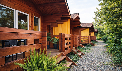 • 8 отдельных домиков в саду с террасой