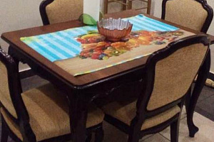 В нашем уютном гнездышке есть всё, что нужно: комод, стулья, тумбочки, шкаф, кровати односпальные, кровать двуспальная, диван-кровать, пуфик, кухонный стол, обеденный стол, стол, туалетный столик, вешалка, балкон, посуда , интернет Wi-Fi.