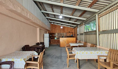 С шашлыком нам положили испорченный лук, причём из-за подливки с кетчупом это не сразу вышло распознать, поэтому сын и я отравились. В конце ужина мы сказали, что лук явно испорчен, и запах был из миски с луком у мангала - тухлятины с уксусом. Хозяин даже не слышал, всё у него, мол, свежее... В итоге ребёнок заблевал ночью всю кроватку, одеяла и пол в номере, у меня организм покрепче, но и мне было плохо (а супруга и второй сын этот лук не ели, и у них было всё хорошо) хозяин, когда я пришёл, и просто, по человечески, без ругани, сказал, что продукты всё же испорчены, начал хамить и обвинять нас самих - что мы что-то другое съели, хотя это не так, и говорить всякую несуразицу "может и мясо испорчено!" и т.п. Когда я сказал, что оставлю отзыв и сфотографировал его номер дома, угрожал мне при втором ребёнке "разбить телефон об голову"... Я ему грубить не стал, просто сказал "Побойся Бога", но если б не Сын рядом - я чувствую, пришлось бы вспомнить боксёрские навыки..