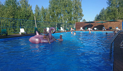 Да, на территории "Приокские Зори" база отдыха в Алексине есть: Бассейн крытый; Бассейн под открытым небом