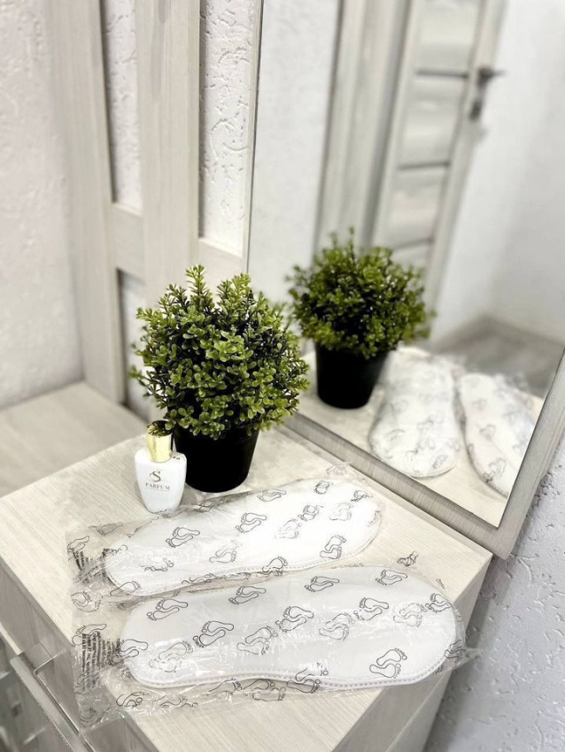 Есть все для Вашего удобства, начиная от одноразовых тапочек, зубной щетки, стирального порошка, вплоть до иголки с ниткой, а также чай, кофе, бутилированная вода, утюг, сушилка.