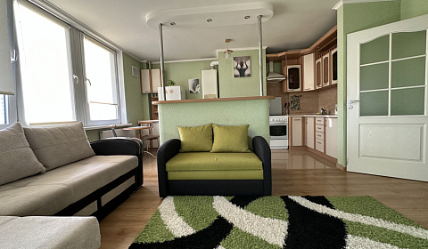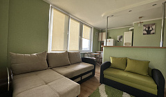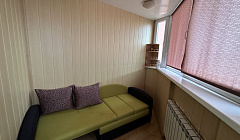 3-4 спальных места : -Диван угловой раскладывается , спальное место 150*206см. - односпальный диван , спальное место 80*195см Просторная застекленная лоджия с отоплением 5,5 м и плотными шторами , можно использовать как жилую , дополнительное спальное место - односпальный диван 70*193см - антимоскитные сетки Автономное Отопление, всегда горячая вода !! Огороженная территория с приватной парковкой и детскими площадками ИНФРАСТРУКТУРА Вид из окна на закаты и летнее озеро . Остановка возле дома,много общественного транспорта