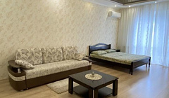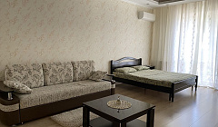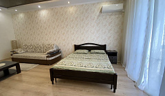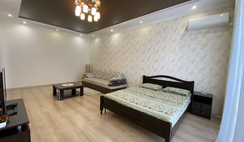 В комнате двуспальная кровать, которая будет застелено к вашему приезду, диван, который раскладывается в полноценное спальное место, телевизор с большим количеством кабельных каналов, кондиционер.