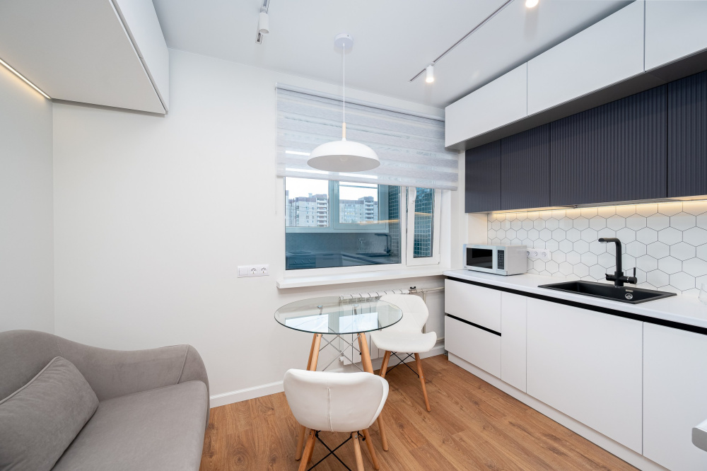 Просторная квартира с отдельной спальной комнатой, просторной кухней и дизайнерским ремонтом. Расположение всего в 5 минутах от метро.