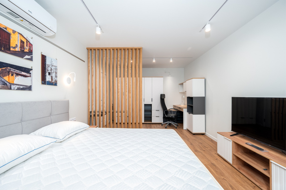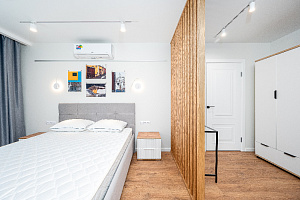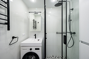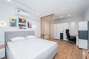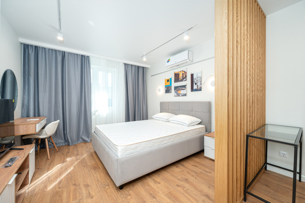 Квартира полностью соответствует всем фото. В ней вас ждут: - В кухонной зоне: посудомойка, микроволновая печь, плита, холодильник, духовка, чайник, посуда и столовые приборы на любой случай. Чай, кофе, сахар, соль, конфеты. - В ванной комнате: туалет, душ, стиральная машина, фен, утюг, набор гигиенических средств, тапочки, полотенца для ног, рук и тела на каждого гостя. - В местах отдыха: постельное белье на каждого гостя, ЖК телевизор со Smart TV, высокоскоростной Wi-Fi в номере бесплатно, кондиционер, рабочее место, большой балкон, зеркало в полный рост.