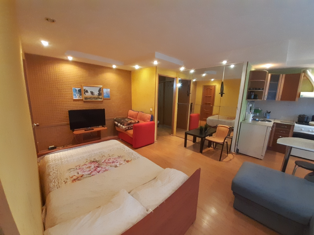 Цены на проживание в 1-комнатная квартира Капитана Буркова 43 в Мурманске начинаются от 2000 руб. за квартиру в сутки, на январь 2026-ого.