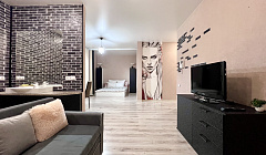 В апартаментах: 4 спальных места: двуспальная кровать + диван-кровать; по запросу раскладушка. Оборудованная кухня (плита, чайник, микроволновка, холодильник). Стиральная машина, сушилка, утюг, гладильная доска. Гардеробная, свежие полотенца и постельное бельё. Тапочки, зубные наборы, мыло, гель для душа, чай и конфеты Интернет и ТВ (2 телевизора). Парковка открытая и под шлагбаумом.