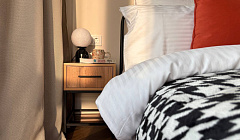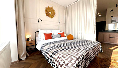 Ортопедический матрас Askona 160*200 см, здесь вы сможете полноценно отдохнуть после насыщенного дня. При необходимости можно отделить спальную зону от гостиной раздвинув штору.