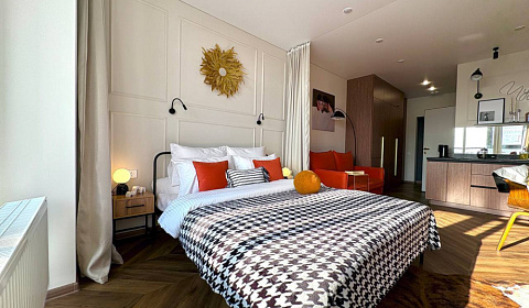 Подарите себе удовольствие от проживания в самом центре мегаполиса в новой атмосферной студии! У нас бесконтактное заселение Внутри Стильная студия с панорамными окнами и видом на город для тех, кто ценит комфорт. Наши дизайнеры уделили внимание каждой детали. На панорамном окне электрокарниз, вы сможете открывать и закрывать шторы с помощью пульта, нежась в кровати. Множество сценариев освещения для создания атмосферы для каждого случая. Кондиционер создаст комфортный микроклимат.