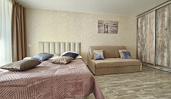 Отдел бронирования работает с 9.00 до 21.00 ежедневно. Возможно заселение раньше или позже указанного времени только при согласовании с менеджером по бронированию. -------------------------------- Оснащена: - 2 раздельных спальных места - двуспальная кровать, двуспальный диван. - Белое постельное белье. В стоимость включен комплект на кровать. За каждый дополнительный комплект берется доплата. - Комплект полотенец из 2х штук - для душа и рук. - Кухня с полным комплектом посуды, холодильником, электро чайником, микроволновкой. - Имеется утюг, фен, водонагреватель, стиральная машина. - Телевизор. Бесплатный WI-FI. - Средства гигиены: шампунь и гель для душа - Фотографии на 100% реальны Квартира укомплектована всем необходимым для долгосрочного проживания.