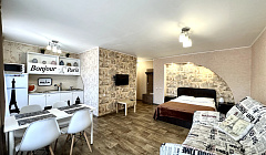 1-комнатная студия Комфорт в Парижском стиле. По адресу ул. Максименко д. 8 Квартира расположена на пятом этаже пятиэтажного, кирпичного дома с лоджией. Рядом находится супермаркеты "Ярче" и "Окей",парк Пушкина, Сбербанк. Военный городок (В\Ч 21005) и ЖД вокзал Юрга на расстоянии 10 мин