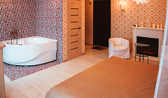 Студия оборудована: Огромной кроватью (2М/2м) В квартире могут с комфортом разместиться 1-2 человека Большой ванной-джакузи с гидромассажем Электро камином ЖК ТВ 81см с 128 кабельными каналами Бесплатным скоростным Wi-Fi интернетом СВЧ печью,электроплиткой,мини холодильником Барной стойкой со всей необходимой посудой Одноразовыми тапочками + средства гигиены
