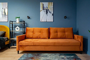 В квартире Удобная двуспальная кровать с ортопедическим матрасом, заправлена чистым постельным бельем, раскладной диван, на котором плюс два спальных места.