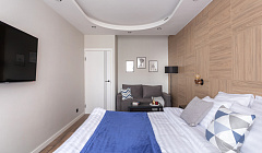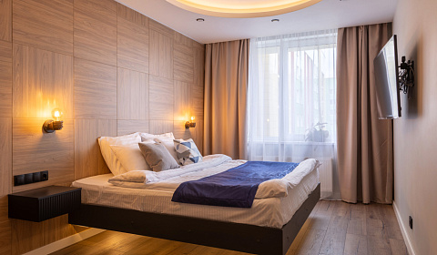 Современная уютная квартира для 2-4 гостей с кроватью кингсайз (200 на 200 см) и раскладным диваном 160см.