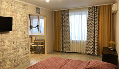 Аппартаменты расположены рядом с остановкой, недалеко набережная и совсем рядом городской парк.