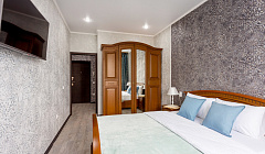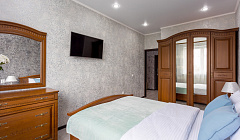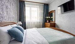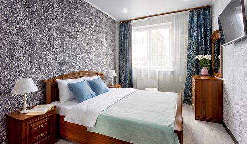 Аппартаменты в современном жк, с консьержкой, тремя лифтами, со всем необходимым для семьи из 3 человек, постельное и полотенца белоснежные с приятным запахом, фен, утюг доска, тапочки, миниатюрки в ванной комнате. Кровать для меня немного была не удобная, зато диван раскладывающийся на кухне отличный, телевизор в спальне смарт, большой холодильник, микроволновка, очень хорошее отопление, не мерзли.