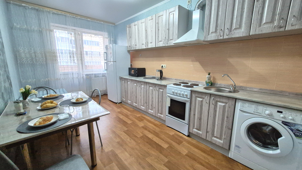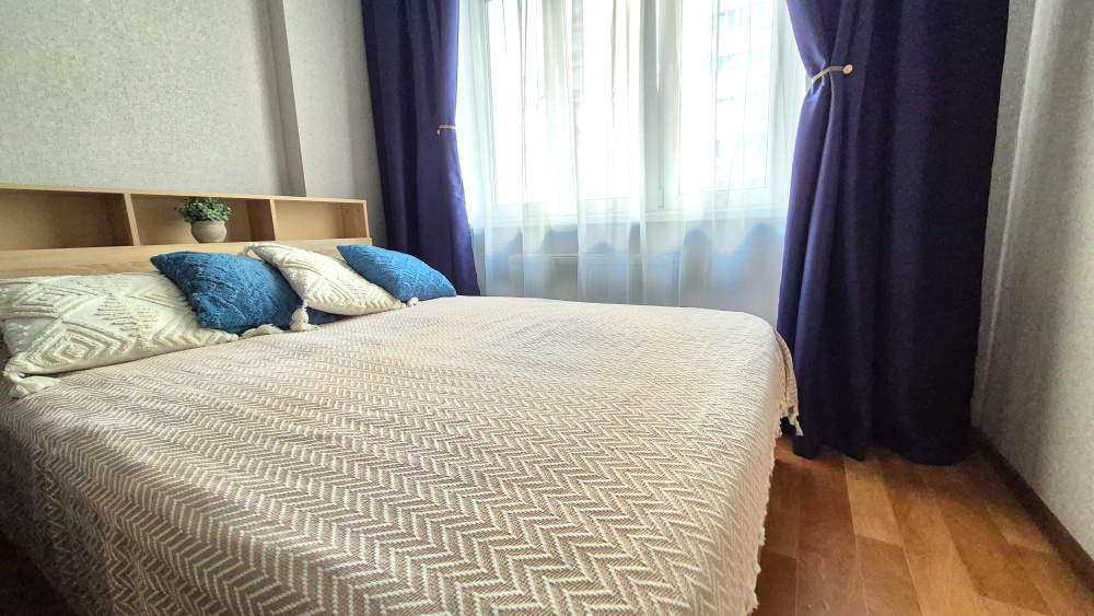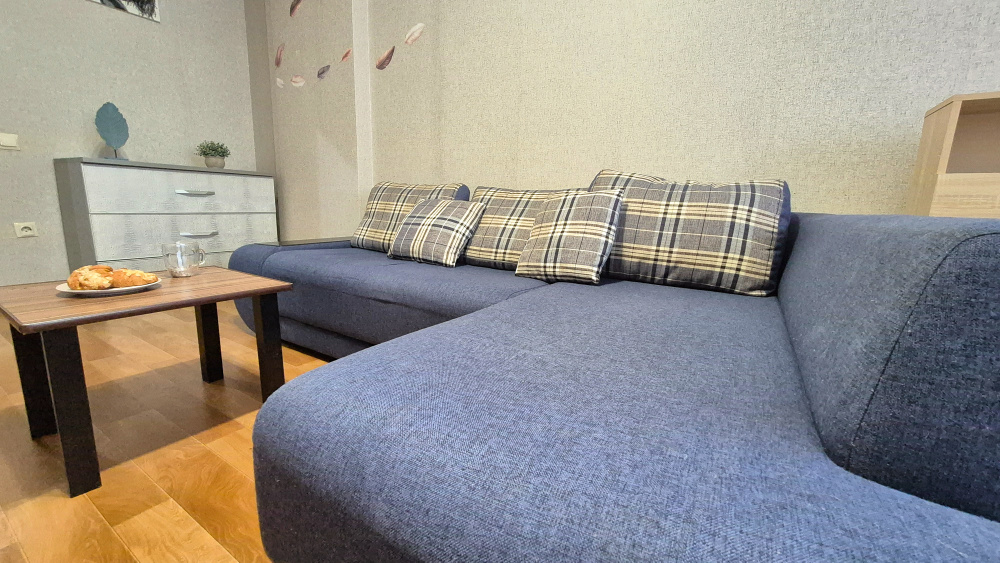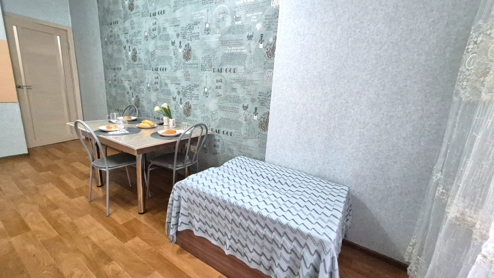 Просторная евродвушка, три раздельных спальных места. Уютный балкон и классная большая огороженная детская площадка рядом с подъездом . Скидки в зависимости от количества дней проживания.