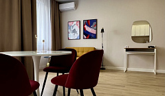 Квартира оборудована двуспальной кроватью с ортопедическим матрасом + диван - кровать. К Вашим услугам удобное рабочее место и всё необходимое для комфортного проживания: установлен фильтр для воды, смарт-телевизор, высокоскоростной интернет, сплит-система обогрев+охлаждение, полностью укомплектованная кухня ( посуда, чайник, холодильник, свч), фен, утюг, гладильная доска, стиральная машина, сушилка для одежды, замки на окна ( для безопастности детей) .
