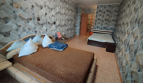 4 раздельных спальных места в изолированных комнатах, из которых две широкие кровати 160/200 с удобным ортопедическим матрасом высотой 22см.и 2 раскладывающихся дивана 120/190