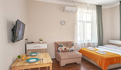 Дом в котором располагается студия является памятником архитектуры. Построен по экспериментальному проекту дома-коммуны в 1930 году. И вам дорогие гости выпадает уникальная возможность пожить в этом доме, и насладится колоритом Владивостока 30-х годов. Да внешнее обустройство дома и фасад не отличаются современным лоском. Но комфортная студия которую мы вам предлагаем выделяется современным ремонтом и находится в центре города, при этом подходит для проживания 2-х гостей. В студии имеется все для КОМФОРТНОГО проживания: - Новая современная техника и мебель. - Полный комплект постельного белья, полотенец - Дополнительное спальное место. - Кухня оснащена всей необходимой посудой, и техникой для приготовления пищи. - Холодильник, плита, чайник, микроволновая печь. - Собственный санузел с ванной, раковиной и с бойлером-горячая вода есть всегда! - Кондиционер для комфортного микроклимата. - Есть стиральная машина. - Фен, утюг, гладильная доска. - Телевизор. - Бесплатный WiFi. - Белье и полотенца стираются в прачке. - Гель для душа, шампунь, зубной набор;
