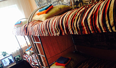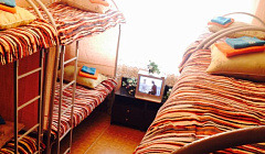 Кровать в общем номере с красивым видом из окна (общая ванная комната)