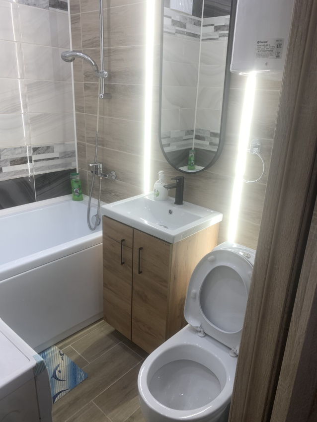 ✅Есть абсолютно все необходимое для комфортного проживания: современный телевизор, микроволновая печь, электрическая плита, чайник, холодильник, необходимая посуда, стиральная машина, водонагреватель, утюг, гладильная доска, фен.