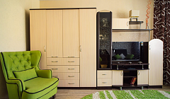 спальня оснащена большой двухспальной кроватью с комфортным матрасом и мягкими подушками , всегда чистое и отглаженное постельное белье, плотные шторы, которые позволят Вам выспаться и полноценно отдохнуть.