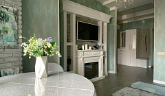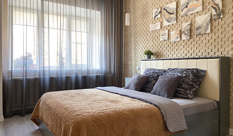 С любовью и вниманием к вашему комфорту , приглашаем Вас оценить уют наших апартаментов , эксклюзивный дизайн и удобство которых , не оставит равнодушным даже самого требовательного гостя ! На территории дома есть огороженная охраняемая парковка ,детские площадки и пруд . В 5 метрах от подъезда находится продуктовый магазин и фруктовая лавка, так же рядом есть кафе , рестораны и торговый центр. Ледовый дворец и исторический центр города с музеями и церквями расположены в 10 минутах ходьбы . Квартира выполненная в стиле арт-деко состоит из двух комнат и просторной гардеробной ,одна из комнат соединена с обеденной зоной и кухней , где есть все для комфортного приготовления и приема пищи: - СВЧ, кофемашина, посудомоечная машина, духовой шкаф, варочная панель, чайник , посуда , столовые приборы, чай, кофе, соль, сахар, специи, масло. В каждой комнате есть телевизор и wi-fi . В одной из комнат установлен красивый камин, в другой предусмотрено удобное рабочее место . В гардеробной есть сушильная машина , а так же гладильная доска, вешалки для одежды, утюг и сушилка , стиральная машина, фен , детский стул . Предусмотрены халаты , тапочки, полотенца, гель , шампунь , кондиционер , одноразовые зубные наборы, хлопковое постельное белье . Что доступно гостю : При необходимости возможна организация трансфера . Важная информация : При заезде оплачивается возвратный залог за сохранность имущества, в размере 4500 т. р.