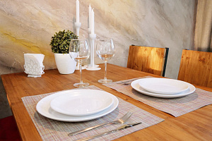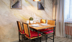 - двухспальная кровать и двухспальный диван-кровать, - полностью оборудованная кухня (холодильник, микроволновка, чайник, плита на 4 конфорки, вся необходимая посуда) - обеденная зона - 2 телевизора (в спальне и гостинной) и бесплатный wi-fi, - 2 балкона (курение запрещено), - с/у (ванна, туалет, раковина), - набор принадлежностей для душа: шампунь, гель для душа, зубной набор, - гладильная доска с утюгом.
