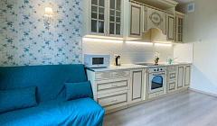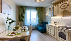 ☼ Просторная и удобная планировка квартиры. Классический дизайн. Вас ждёт отдельная спальня с удобной двуспальной кроватью с ортопедическим матрасом и большая гостиная с чудо-диваном-трансформером. А также огромная кухня-столовая, где расположился дополнительный раскладной диван.
