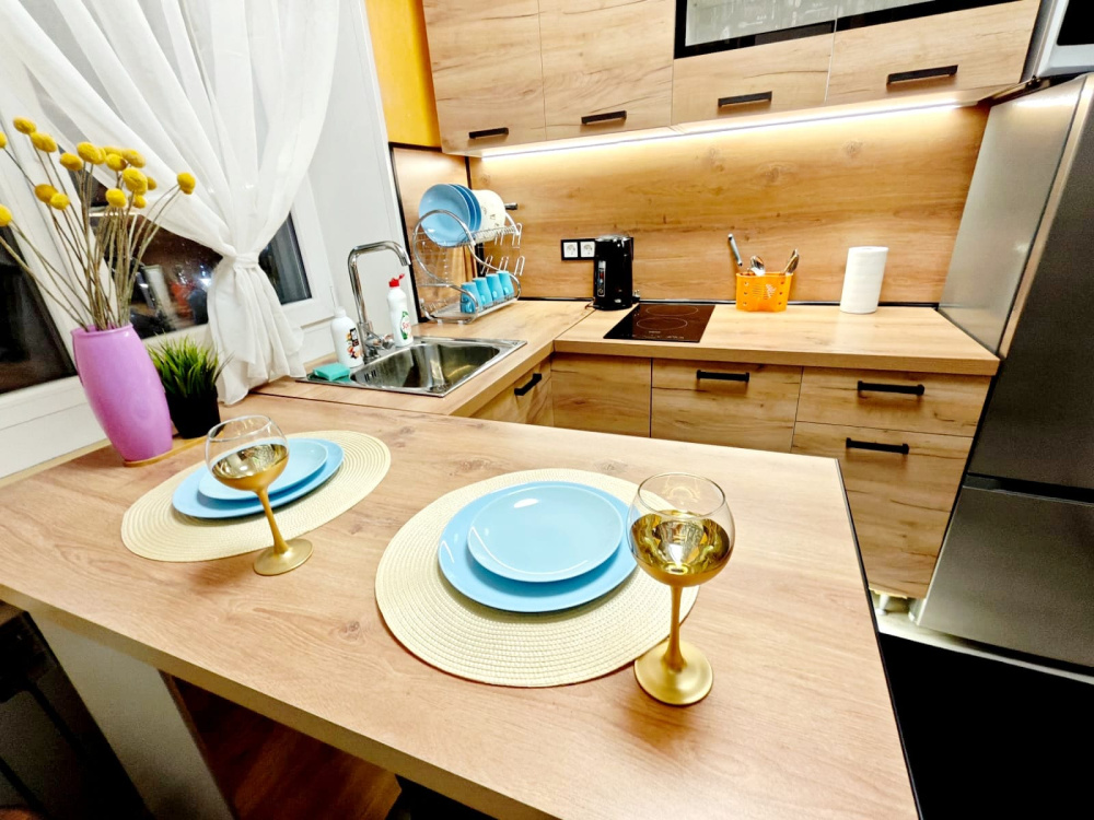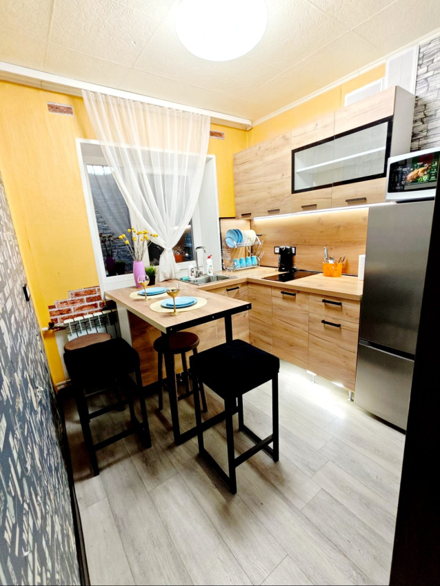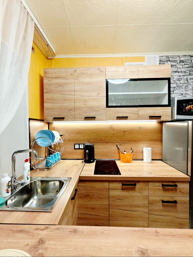 ✅Есть абсолютно все необходимое для комфортного проживания: современный телевизор, микроволновая печь, электрическая плита, чайник, холодильник, необходимая посуда, стиральная машина, водонагреватель, утюг, гладильная доска, фен.