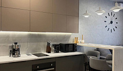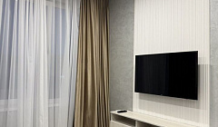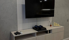 – обеденная зона со столом, смарт тв и диваном, который раскладывается в удобное спальное место рассчитанное на 2-х человек;
