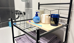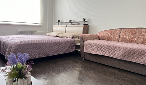 В апартаментахК услугам гостей однокомнатная квартира с необходимой бытовой техникой: стиральная машина, холодильник, микроволновая печь, электрический чайник, утюг, гладильная доска, сушилка. Кухня укомплектована посудой и столовыми приборами. В квартире расположена двуспальная кровать с ортопедическим матрасом и раскладной диван, для комфортного сна имеется топпер. Предоставляются комплекты постельного белья и полотенец на каждого гостя, а также шампунь, гель для душа, мыло, стиральный порошок.