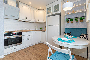 -В кухне кран с фильтрованной питьевой водой, посудомойка + капсулы, холодильник, микроволновка, эл. чайник, вся необходимая посуда.