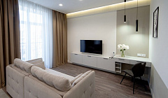 Удобная кровать, диван, 2 огромных телевизора, халаты, тапочки, все необходимое и не только... Нам было очень комфортно