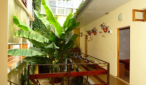 В "Афалине" есть небольшой уютный весь в зелени дворик (здесь очень много различных цветов и растений, в том числе и экзотических), где можно было пообедать на свежем воздухе и пообщаться с другими отдыхающими