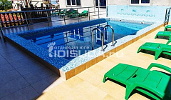 Бассейн хороший , работает с 9:00 до 21:00, тепленький, вечером купаться приятно Расположение хорошее. Конечно в гору подниматься тяжеловато, особенно после экскурсий, но не критично. Зато до моря 15-20 минут обычным шагом и если заходить в торг. лавки:) В общем спасибо вам за теплое гнездышко в вашем домике. Будем выбрать именно вас)
