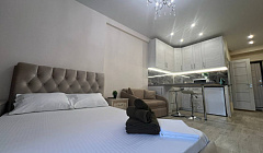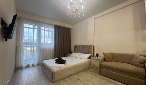 Просторная студия 28 кв. м с удобной кроватью и раскладывающимся диваном.