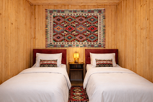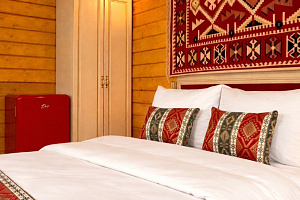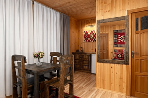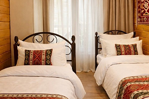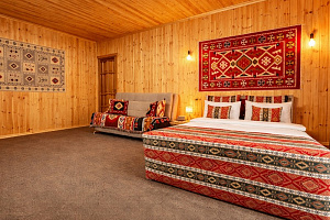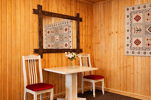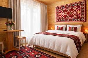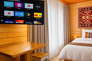 В отеле представлены номера различных категорий комфортности с высокими потолками и стенами из экологичного бруса. В номерах есть все необходимое для комфортного проживания: смарт ТВ, Wi-Fi интернет, мини-холодильник, фен, центральное отопление, светильники, розетки у кроватей. В каждом номере при заселении бесплатно предоставляются: свежее постельное белье, свежий комплект полотенец, тапочки, одноразовые зубные щетки, мыло, гели для душа, шампуни.