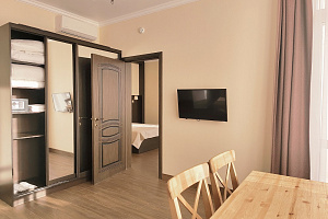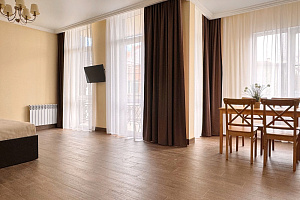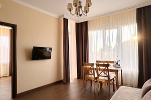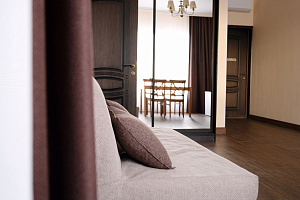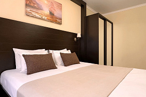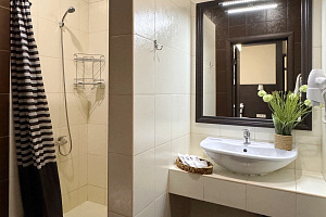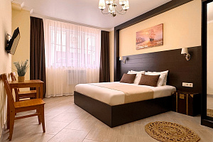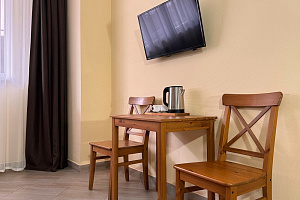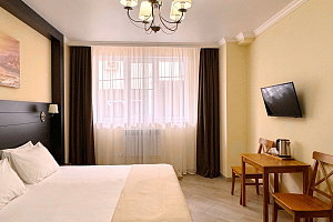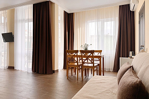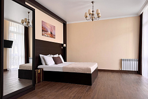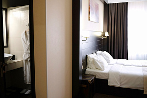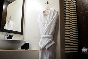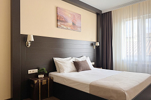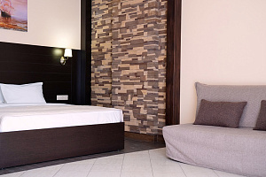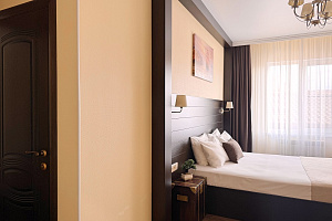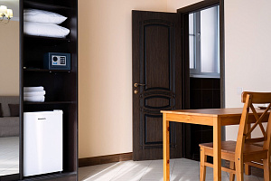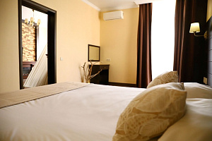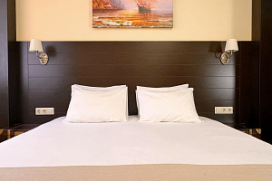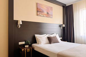 Переступив порог отеля, вы сразу ощутите его неповторимую ауру: стильный интерьер и комфортные номера, оформленные со вкусом и вниманием к деталям. В номерах вас ждёт пространство для полноценного отдыха — мягкие кровати с безупречным постельным бельём, кондиционеры для комфортного микроклимата, телевизоры и бесплатный Wi‑Fi, халаты и тапочки для вашего комфорта. Каждая мелочь здесь создана для того, чтобы вы могли по‑настоящему расслабиться и забыть о повседневных заботах.