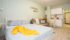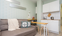 При заселении квартира была мягко сказано грязная, была пыль, кухонные салфетки на столе снизу были чем-то измазаны и уже все это засохло. Раковина была грязная, что кухонная, что в ванной. Не приятно было находится. Но самое страшное, что могло произойти это кусок битого стекла, который вонзился мне в ногу. Не знаю, как можно убирать квартиру и не подмести, не заметить стекло. Ужасно. Стекло вытащила пинцетом, но для себя решила, что никогда больше не буду снимать квартиры посуточно, тем более за такую цену.