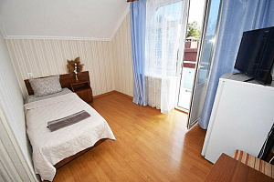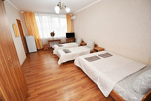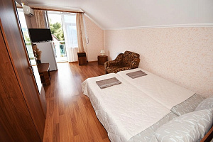 Гостевой дом "Анапка-2" расположен в городе Анапа в самом центре, на главной центральной улице Крымской. Наше преимущество заключается в том, что рядом находятся два оборудованных городских пляжа: центральный песчаный пляж - 8 минут пешком, и галечный оборудованный пляж "Высокий берег" - 12 минут пешком. Наши гости посещают обязательно оба пляжа, так как у каждого есть свои плюсы. Рядом, в 3-5 минутах ходьбы будет всё что нужно: большой центральный парк с аттракционами, аквапарк, фонтаны, океанариум, красивая центральная набережная, экскурсионные бюро, морской порт с морскими прогулками, дайвинг-центр, супермаркет "Магнит", палатки со свежими фруктами и овощами, кафе и рестораны, крупнейшие лечебные здравницы России (санатории Дилуч, Надежда, Русь и многие другие). Это лучшее расположение гостевого дома в Анапе для отдыха. На первом этаже располагается кухня (35 кв.м.) и красивый просторный зал приема пищи (50 кв.м.). Кухня оборудована: газовыми плитами, микроволновой печью, холодильниками, мойками, столами, стульями, посудой и инвентарём в достаточном количестве. Вы всегда сможете самостоятельно приготовить и покушать. Буквально в 3 минутах располагаются столовые, предоставляющие недорогое и качественное комплексное питание. По дороге на море вы также будете проходить мимо кафе и ресторанов на разный вкус и кошелек. Вечером, накупавшись на море, наши гости очень любят посидеть во дворе в теньке виноградника, и, вдыхая теплый морской воздух, поделиться впечатлениями об отдыхе.Бронируйте номер прямо сейчас, а мы гарантируем вам хороший отдых!