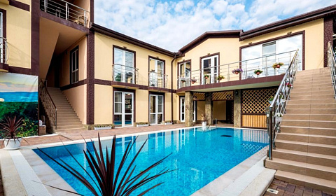 Отдыхали в 2022 году. Отель расположен в тихом месте, рядом удобная площадка для парковки, что есть большая редкость для Геленджика. До моря, центра на автомобиле 3 минуты. Пешком до моря минут 10 по тенистым аллеям мимо сурермаркетов, кафе, столовых, торговых рядов. Гостиница чистенькая, свежий ремонт, ароматное мягкое белье и полотенца, шикарный бассейн с подогревом и детской зоной, полностью оборудована кухня на территории. Очень хотели вернуться в 2023 году, но все места заняты. Конечно, ведь побывав здесь однажды, каждый захочет вернуться снова и снова)