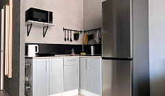 В квартире есть все необходимое для комфортного проживания. Кухня оборудована мебелью и техникой, есть плита, микроволновка, холодильник, посуда. В ванной предусмотрены фен и полотенца, мыло, шампунь, гель для душа.